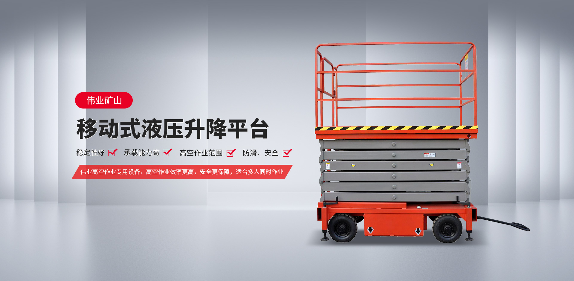 巍巍嵩山,滔滔黃河。偉業人艱苦奮斗、勵精圖治、縱向求索、橫向求源、在經濟大潮中勇于開拓。新鄉市偉業礦山起重設備有限公司是生產起重、登高設備的**廠家,擁有精良的國內、外加工設備,完善的檢測設備。偉業礦山公司是集科研、生產、銷售于一體的高水平企業?!皞テ稹迸浦饕a品有單、雙梁起重機、懸臂起重機、平衡吊、電動葫蘆及配件;剪叉式、鏈條式、折臂旋轉液壓升降平臺,手拉式鋁合金、絕緣平臺及各種型號鋁合金、絕緣梯兩大類二十余種。公司具有設計各種非標、登高、起重設備技術和過硬的安裝維修隊伍。崢嶸歲月,碩果累累,奮進的偉業公司先后獲得:《河南省**保護企業》、《產品質量、服務雙優企業》、《科技**單位》、《國家質量管理達標企業》、《重合同守信用企業》等榮譽稱號。公司董事長郎希章攜全體員工竭誠歡迎新老客戶前來光臨、指導、洽談業務。